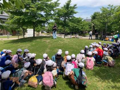 動物園に到着し、動物園での活動や注意点について話を聞いている様子です。しっかりと先生の話を聞き、安全に活動することができました。