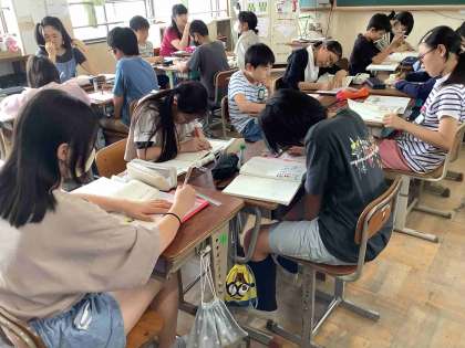 国語科の学習で「時計の時間と心の時間」について学習しています。今日は、学習計画を立てた後、段落分けをしたり文章の構成を考えたりしました。班で意見を出し合いながら、考えていました。