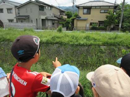 グーグルアースで不思議な建物を見つけたので、実際に探検に行くことになりました。目的地までの道中では、岩倉川を観察し、たくさんの生きものを見つけることが出来ていました。