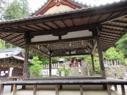 目的地から少し歩いていくと、何やら神社が見えてきました。「石座神社」と書いてあります。いったい何と読むのか、神社の真ん中にある建物は何のためにあるのか。またまたたくさんの疑問が出てきました。