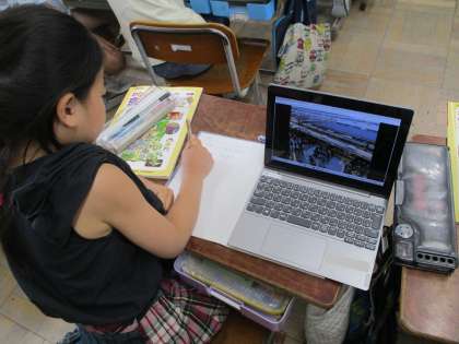 京都市の様子について,友だちと交流したり資料を見たりしながらノートにまとめています。