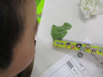 大きさを定規で慎重に測ったり,クーピーの色を重ねてみたりしながら,熱心に記録する姿が見られました。