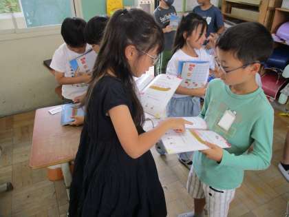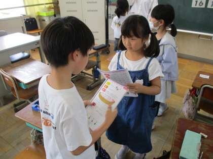 数をたずねる表現を学び,お友だちとやり取りを楽しみました。