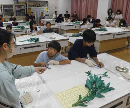 みんな、やや緊張しながら、カッターナイフで茎や葉を切っていました。