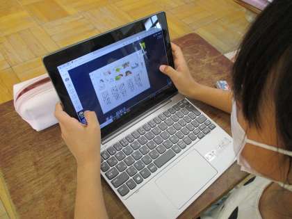 お友だちと「なんやったっけ?」「あじの開きってことは…」など,お話をしながら指やペンで操作する姿が見られました。