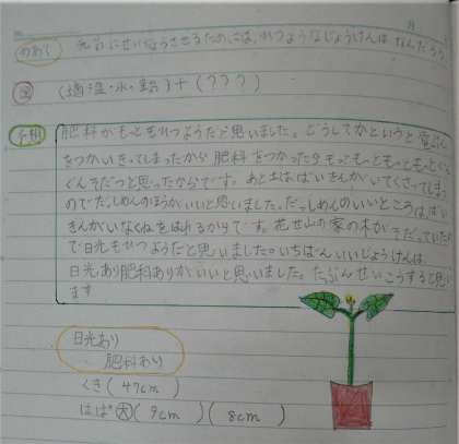 理科だより5年「植物が育つ条件2」