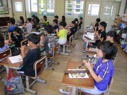 1音ずつ指づかいを習い,お友だちと確認しながら音の響きを楽しんでいます。