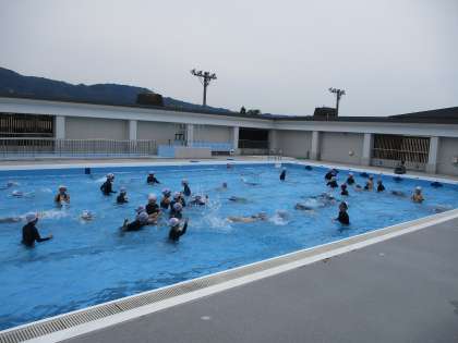 曇り空ではありましたが,気温は高く,子どもたちはプールで元気に活動していました。