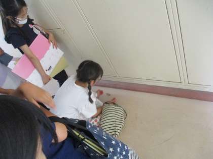 廊下で3年生の子たちがわいわいとしていたので,何があったのか近づいてみると,校舎内に入ってしまった蛾を逃がそうとしていることが分かりました。