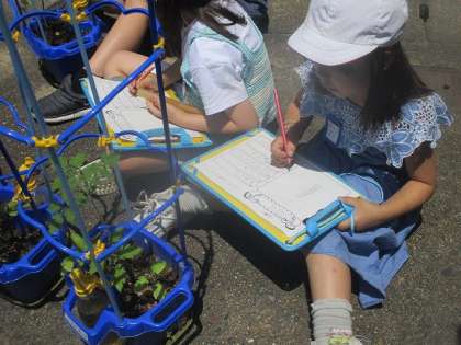 ミニトマトの花が咲いてきています。早く実が付かないかな・・と待ち遠しそうな子ども達です。