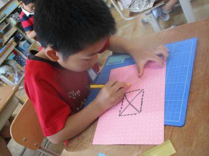 初めてのカッターをつかって、窓づくりをしました。そこからのぞく景色は最高ですね。
