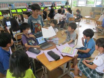 岩倉南小学校では、年に数回異学年で人権課題に対して対話する機会をもつ「みんなの日」という取り組みをしています。今回は、自分もみんなも笑顔で過ごせる学校」をテーマに話し合いをしました。「やさしさと思いやりを大切にする」「悪いことをしている人がいたら注意して、良いことができるようにする」など話し合いの中でたくさんの意見が出てきていました。1年生は初めてで緊張しながらもお兄さんお姉さんにうまく引き出してもらって自分の意見を話していました。