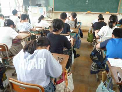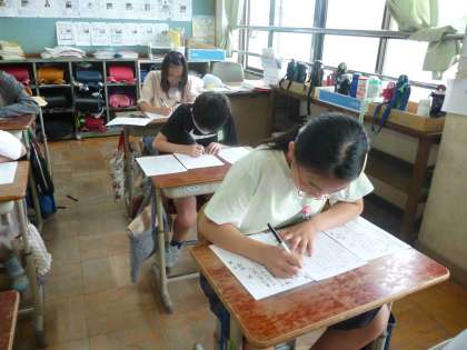 書写で硬筆の学習をしました。今回は、「枕草子」を見本を見ながらサインペンで書きました。全員集中して取り組んでいました。