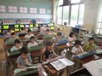 音楽科の学習では、鍵盤ハーモニカの学習が始まりました。今日は準備や片付けの仕方、構え方、息の吹き込み方など基本的なことを練習しました。子どもたちは「すごい。」「おもしろい。」「楽しいからもっとやりたい。」と楽しそうに学習を進めていました。