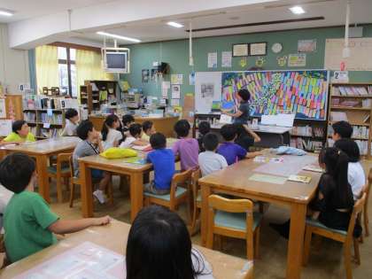 学校図書館に行き、司書の先生に読み聞かせをしていただいたり、お気に入りの本を読んだりして過ごしました。