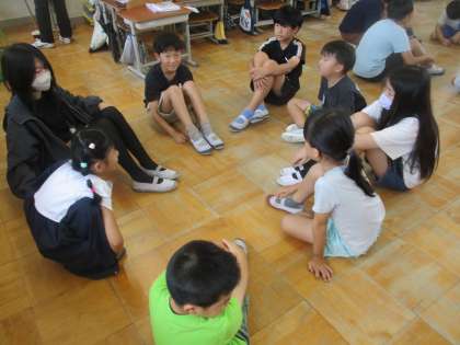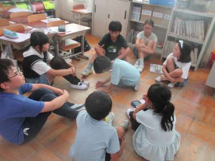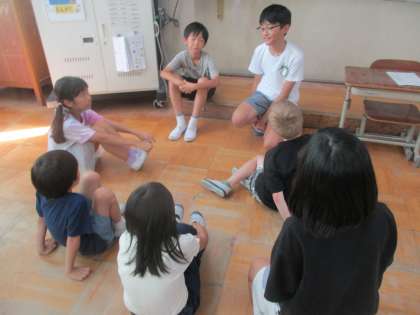 今日はたてわりグループで国際理解教育をテーマに話し合いをしました。他の国の当たり前を○×クイズで考え、日本のルールや当たり前との同じところや違うところ、初めて知って驚いたことなどを話しました。