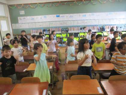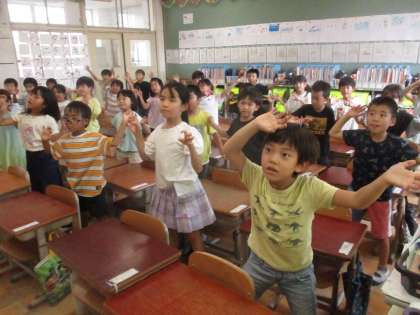 運動会のデカパンリレーの入場で踊るダンスを各教室でも練習しています。子どもたちは帰りの用意をすぐに終わらせて、ノリノリで踊っています。明日は学年で合わせての練習ですので、楽しんで練習しようと思います。