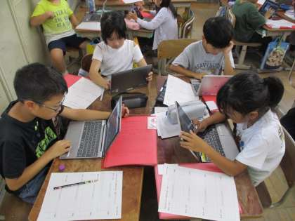 3年生は、総合的な学習の時間の35時間を使って、プログラミング教材を用いた学習を始めます。