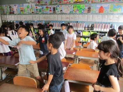 今日は2学期最後の英語活動でした。2学期の間に学習をした挨拶、色、数字、体の部位の言い方やじゃんけんの仕方をゲームを交えながら復習しました。子どもたちは「もっとしたい」「楽しい」「もう終わるのが寂しい」と言っていました。また3学期も英語活動があるので、楽しみにしてくれたらなと思います。またおうちで言えるようになった英語を聞いてあげてください。