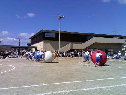 大玉転がしの様子です。エントリー競技も盛り上がりました。