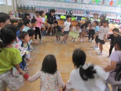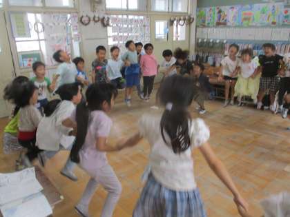 国語科では「くじらぐも」の学習を進めています。今日はみんなでくじらぐもに乗れるか挑戦してみました。「天までとどけ、一、二、三。」と息を合わせてみんなで叫び、ジャンプしました。今日は残念ながらくじらぐもには届かなかったので、明日は外に出てくじらぐもに向けてみんなでジャンプしてみようと思います。くじらぐもに届くといいな...。