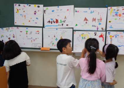 絵が仕上がってからは、自然と友達同士で冒険の説明をしたり、聞いたりする姿が見られました。