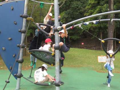 子どもの楽園では、たくさんの遊具で遊びました。