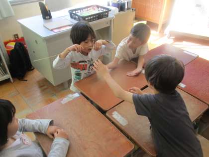 今日は、栄養教諭の先生からお米の力について聞き、どうしたらお米を残さず食べられるかを考えました。実際に稲穂を触ったり、お米の好きなところや何のおかずと合わせるのが好きかを考えながら、よりお米に興味をもち、お米を残さず食べるには、おかずと合わせながら食べたり、みんなが少しずつ協力して一口でも食べてパワーをつけたりすることが大切だと考えていました。授業でしっかり考えた効果か今日の給食は「ごはんペロリ」でした。