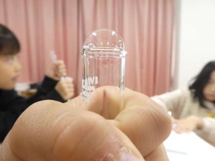 今回は、シャボン液のまくでとじこめた試験管の中の空気を温めるとどうなるかを調べました。