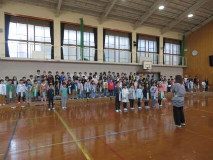 体育館での音楽発表会の練習が始まっています。