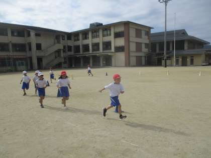 体育科の学習では、「ゆっくりかけあし」の学習を進めました。初めは思いきり早いペースで走って2分間走りつづけられない子や、早くなったり遅くなったりする子など、一定のペースがつかめず苦戦している子が多かったですが、4時間の学習を進める中で少しずつ自分のペースを見つけて走ることができていました。