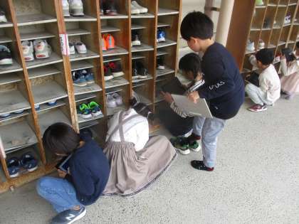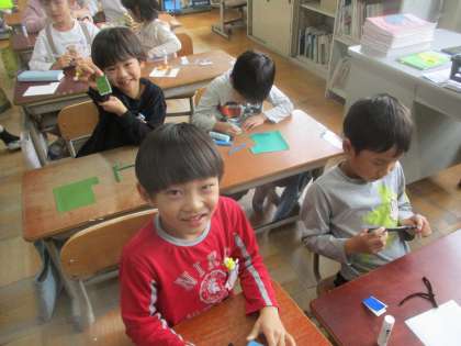 今日は図画工作科の学習で「すきまちゃん」をつくりました。工作用紙、折り紙、モールを使って自分の友だちのすきまちゃんをつくり、すきまちゃんの好きそうな隙間を探して、GIGA端末で写真を撮りました。靴箱の隙間やごみ箱の隙間、筆箱の隙間など色々な隙間を見つけていました。