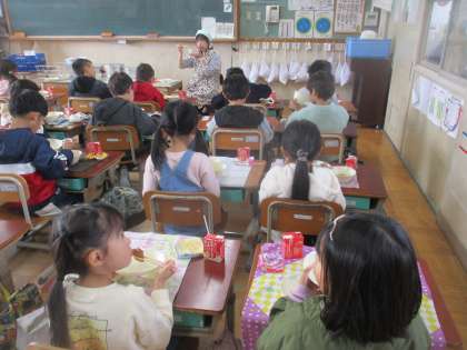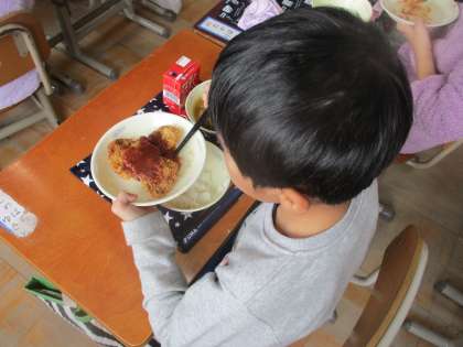 今日の給食は、「ヒレカツ」がでました。給食感謝の献立で、私たちが給食を食べるまでに関わって下さっているいろいろな人に感謝をしながら食べました。1枚ずつ給食調理員さんの手作りで味わって食べました。岩倉南の40周年を祝う会とちょうど同じ日になって、みんな「岩倉南おめでとう!ありがとう」と言って食べていました。