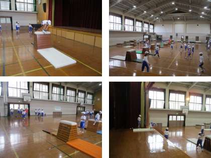 いろいろな高さや技に挑戦し,友だちといっしょに頑張っています。