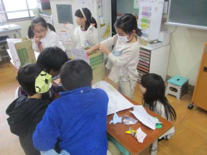 今日のロング昼休みは、2年生を招待して秋のおもちゃまつり第2弾を行いました。2年生がおもちゃランドに招待してくれたお礼に秋のおもちゃまつりに招待しました。2年生が「去年わたしたちもやったよ」「こんなおもちゃが作れるんだね」とお兄さんお姉さんになってたくさん話してくれました。終わった後、1年生は「2年生になったら、今の2年生みたいにもっと楽しいおもちゃを作りたい」と言っていました。