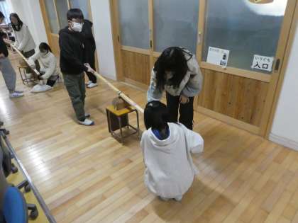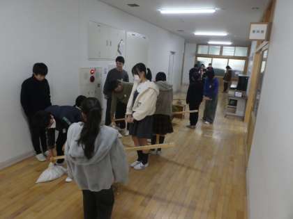 班ごとに協力し合いながら、手ごたえの違いを調べていました。