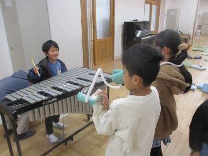 音楽科の学習では、いろいろな楽器に触れて、演奏をしています。今日は初めて鉄琴を演奏しました。鉄琴のならし方を確認した後、きらきら星に合わせて演奏をしました。子どもたちは鳴らしながら、「おぉー」と言い、初めてとは思えないほど上手に演奏していました。