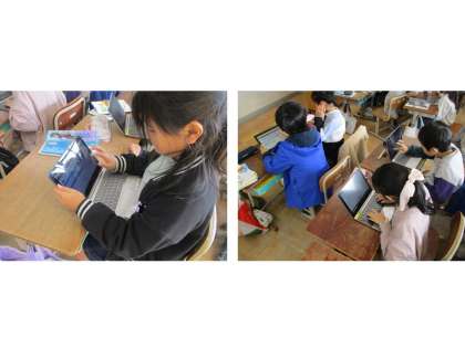 プリント学習やデジタルドリルを使って,学習のおさらいに取り組んでいます。