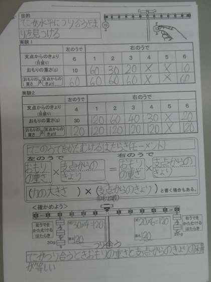 てこのぼうが水平になってつり合うあうのは、どのような時かについて調べました。