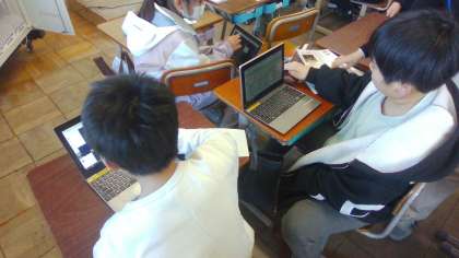 音楽の学習では、GIGA端末を使って、様々な音色を使いグループで作曲を行っていました。クラスに様々な音色が響いていました。