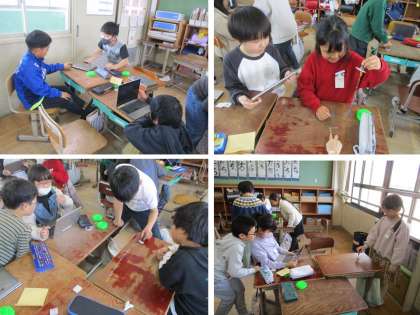 磁石とクリップの間にプラスチック製の段ボールを挟み、枚数が増えるにつれて引きつけられるクリップの数がどのように変化するのかを調べました。