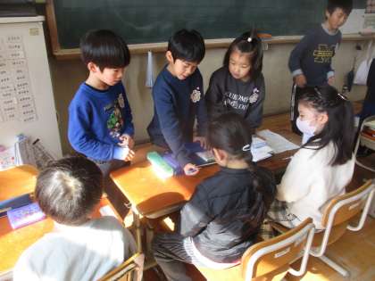 秋に続き、年長児さんを小学校へ招待して、年長児さんに向けて小学校体験会を開きます。学習や給食、友だちづくりのことなど、年長児さんの不安を楽しみに変えるべく、子どもたちはそれぞれ担当を決めて準備を進めています。今日は自分たちでも体験し合いながらまだ準備が必要なものを考えました。子どもたちは「うまく説明するのが難しい。」「説明が長くなってしまう」など説明のことに苦戦しているようでした。