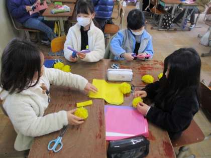 お祝いするためのかざり作りをしています。