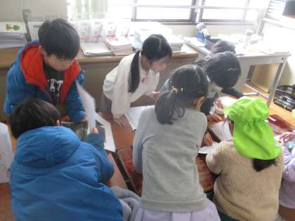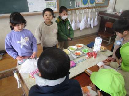 秋に続き、年長児さんを小学校へ招待して、小学校体験会を開きました。学習や給食、友だちづくりのことなど、年長児さんの不安を楽しみに変えるべく、子どもたちはそれぞれ担当を決めて準備を進めました。本番では、子どもたちは緊張しながらもお兄さんお姉さんとして説明ははっきりと大きな声で分かりやすく、付き添いは「大丈夫?」「どこに行きたい?」など聞きながら優しく声をかけていました。みんなもう2年生になれるなと感じるほど立派に努めていました。