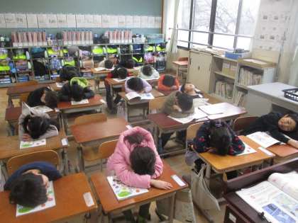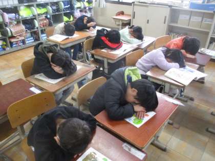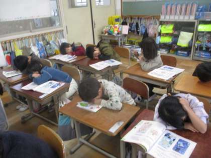 音楽科の学習では、エステン作曲の「にんぎょうのゆめとめざめ」を鑑賞しました。曲調をを聞き取りながら、みんなで人形になりきって眠ったり、夢を見たり、踊ったりしました。「お風呂が沸いたときに聞く曲だ。」「めざめのところがすごく短い。」と言いながら、身体を動かして楽しんで聴いていました。