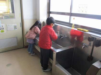 早速丁寧に手を洗おうとする素直さがとても可愛らしいです。