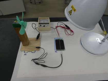 光電池に光を当てた時に出てくる電流について調べました。