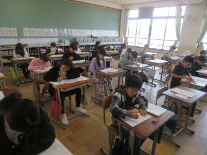 今日の1〜3時間目に、全国学力・学習状況調査がありました。国語、算数、理科の3教科の実施でしたが、子どもたちは最後まで集中して取り組んでいました。