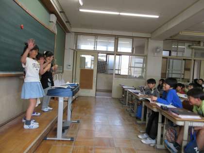 やっと地上に出てきたかえるはどんな気持ちか考えて、その気持ちを声色や動きで表現していました。教科書にメモをして、どう読むか考えている人もいました。