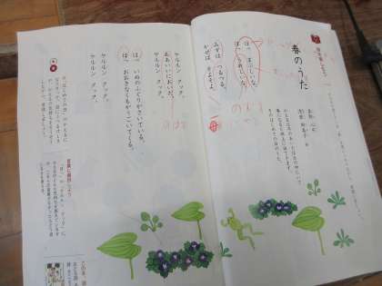 国語の学習で、「春のうた」という詩を工夫して音読しました。